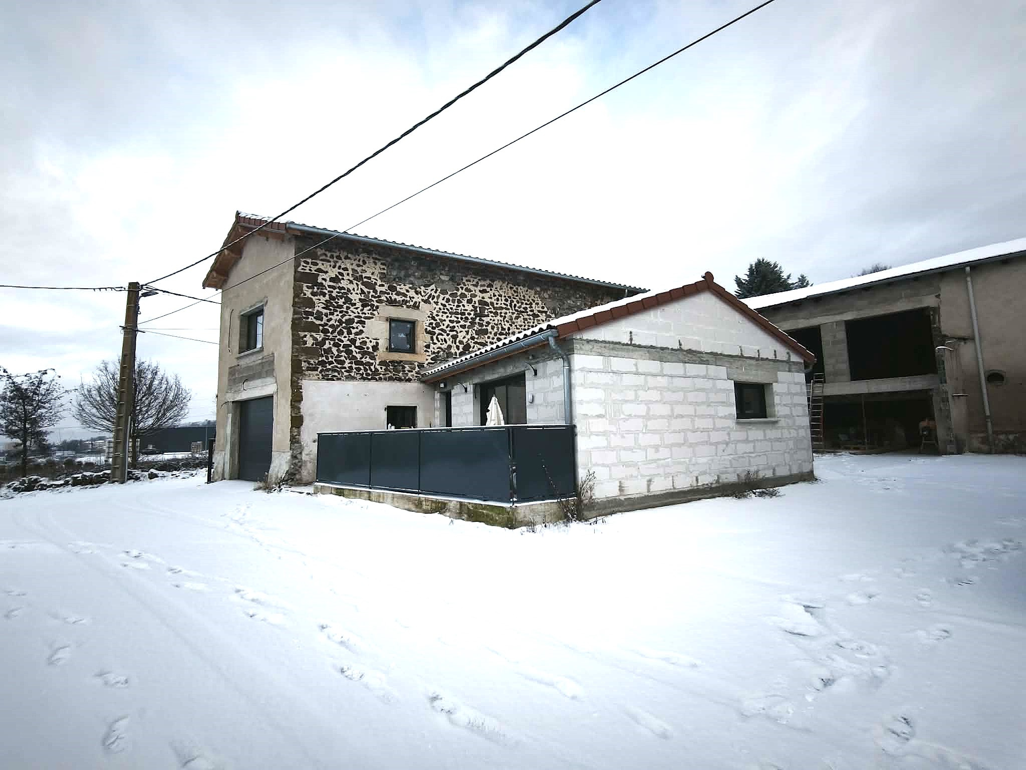 La première habitation 132M2, construite en béton cellulaire date de 2023. Seul le crépis reste à faire.