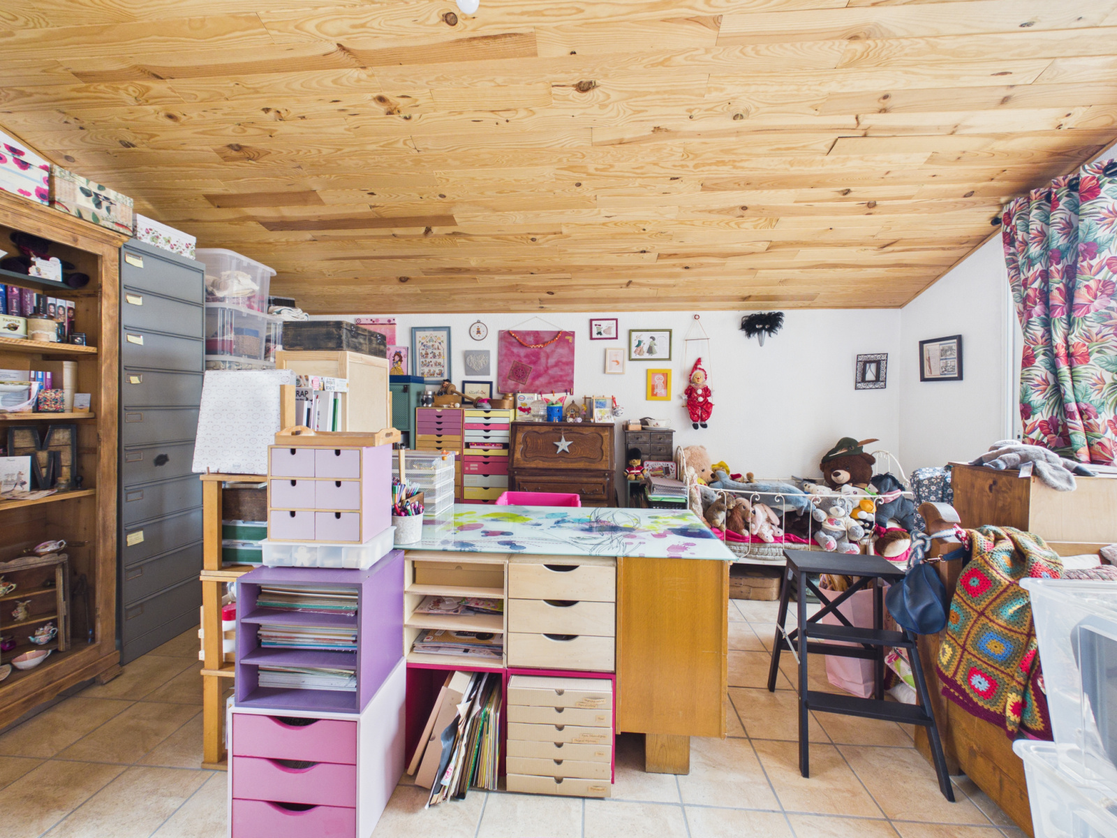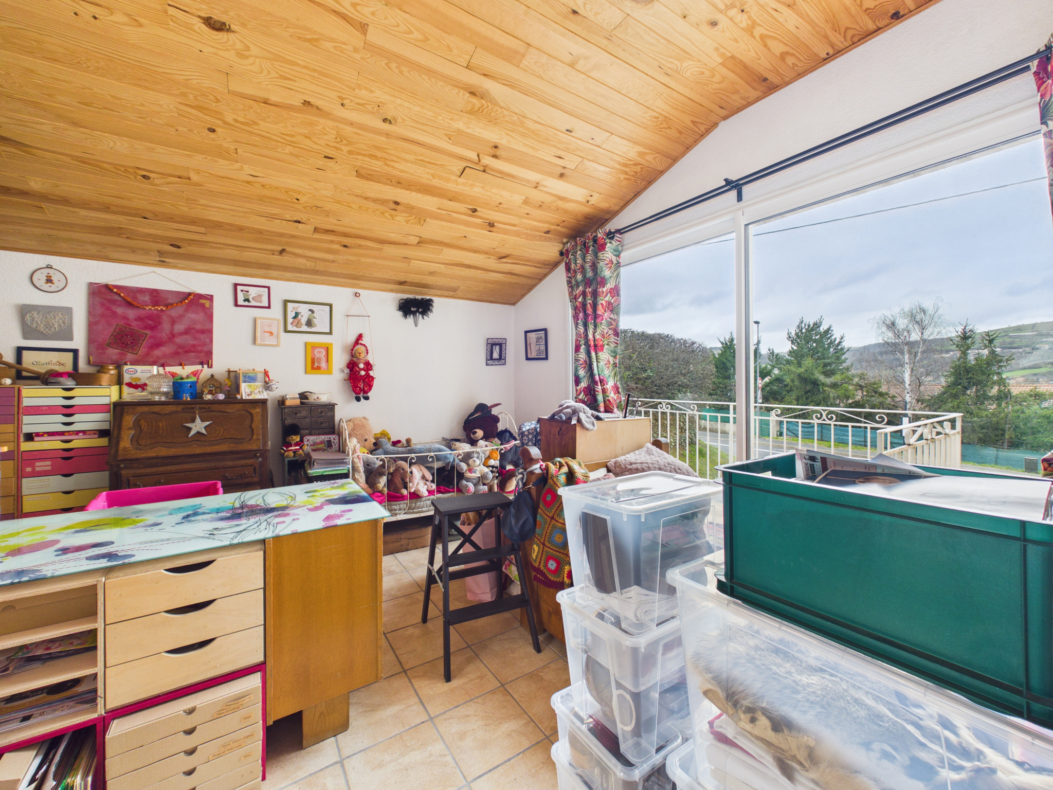 À l’étage, la partie habitation se compose d’un salon-séjour lumineux avec cuisine ouverte, donnant accès à un balcon. L’espace nuit comprend quatre chambres et une salle de bain.